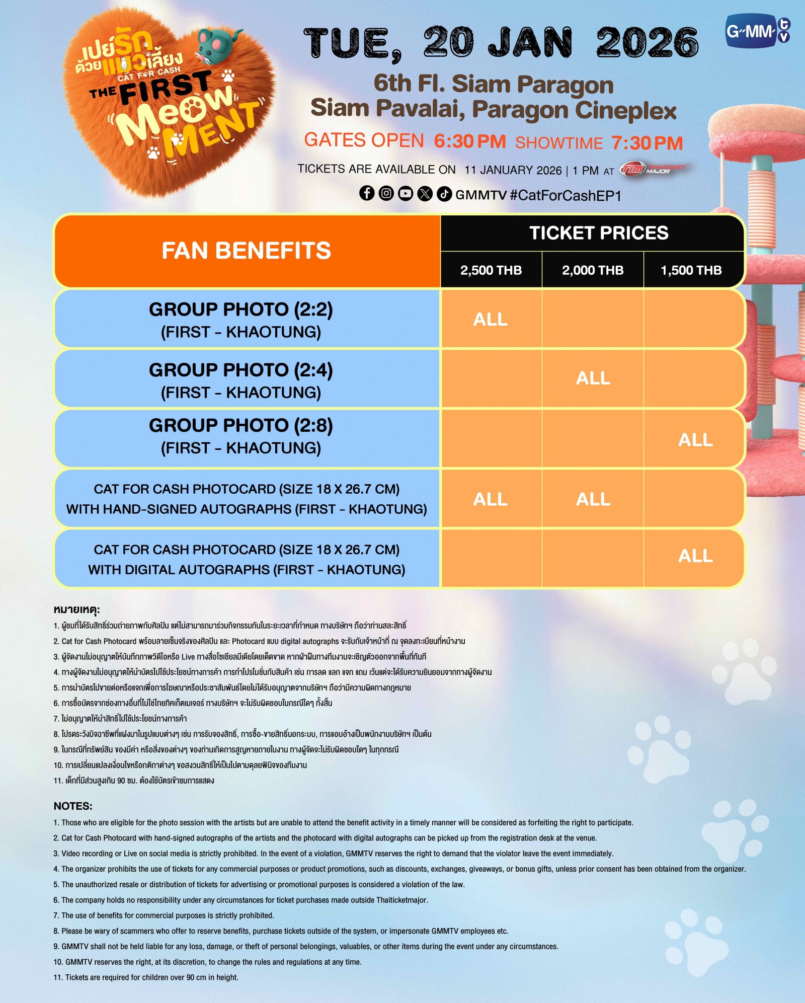 2. Cat for Cash Photocard พร้อมลายเซ็นจริงของศิลปิน และ Photocard แบบ digital autographs จะรับกับเจ้าหน้าที่ ณ จุดลงทะเบียนที่หน้างาน