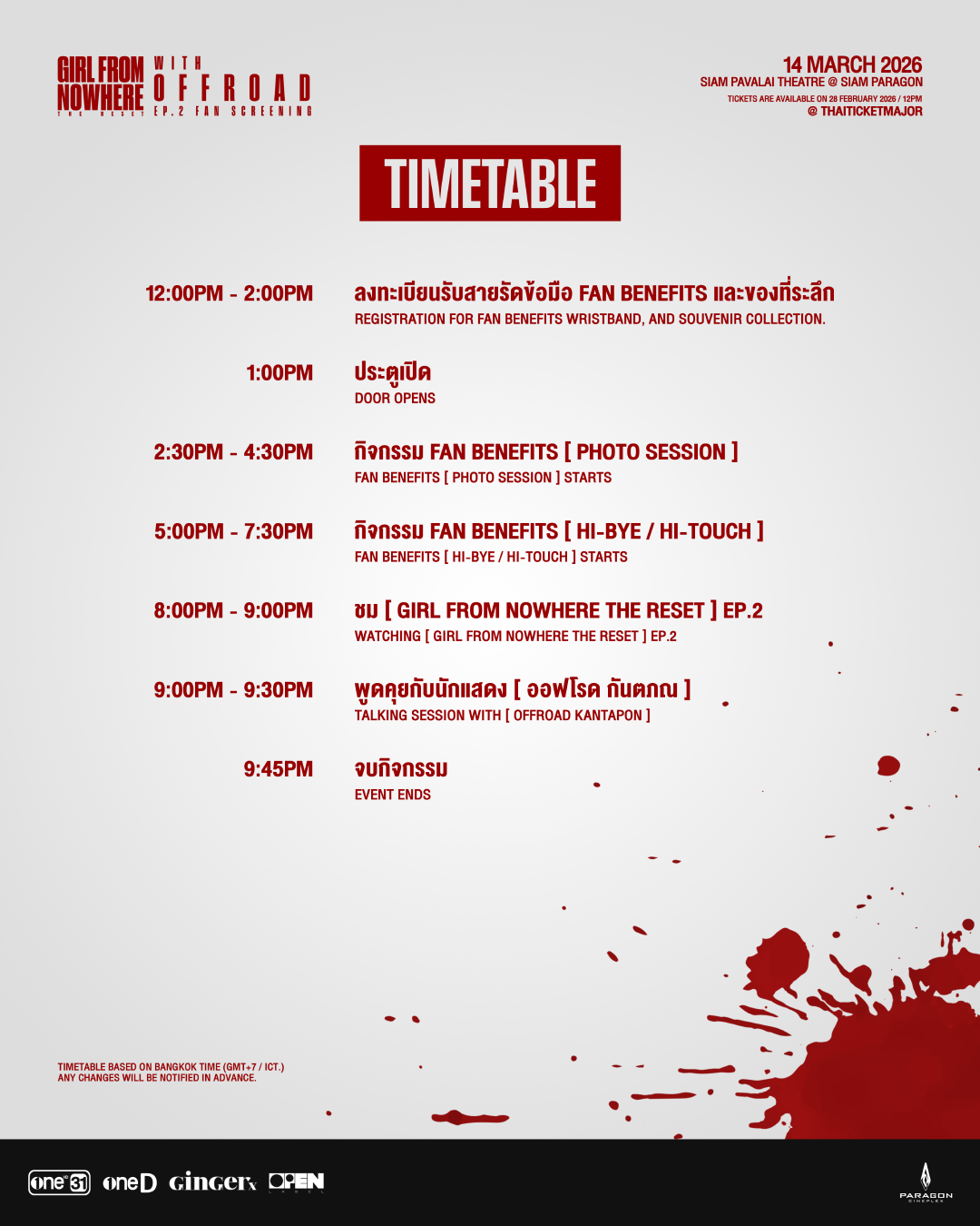 | 14.30 - 16.30 น. | กิจกรรม FAN BENEFITS [PHOTO SESSION] |