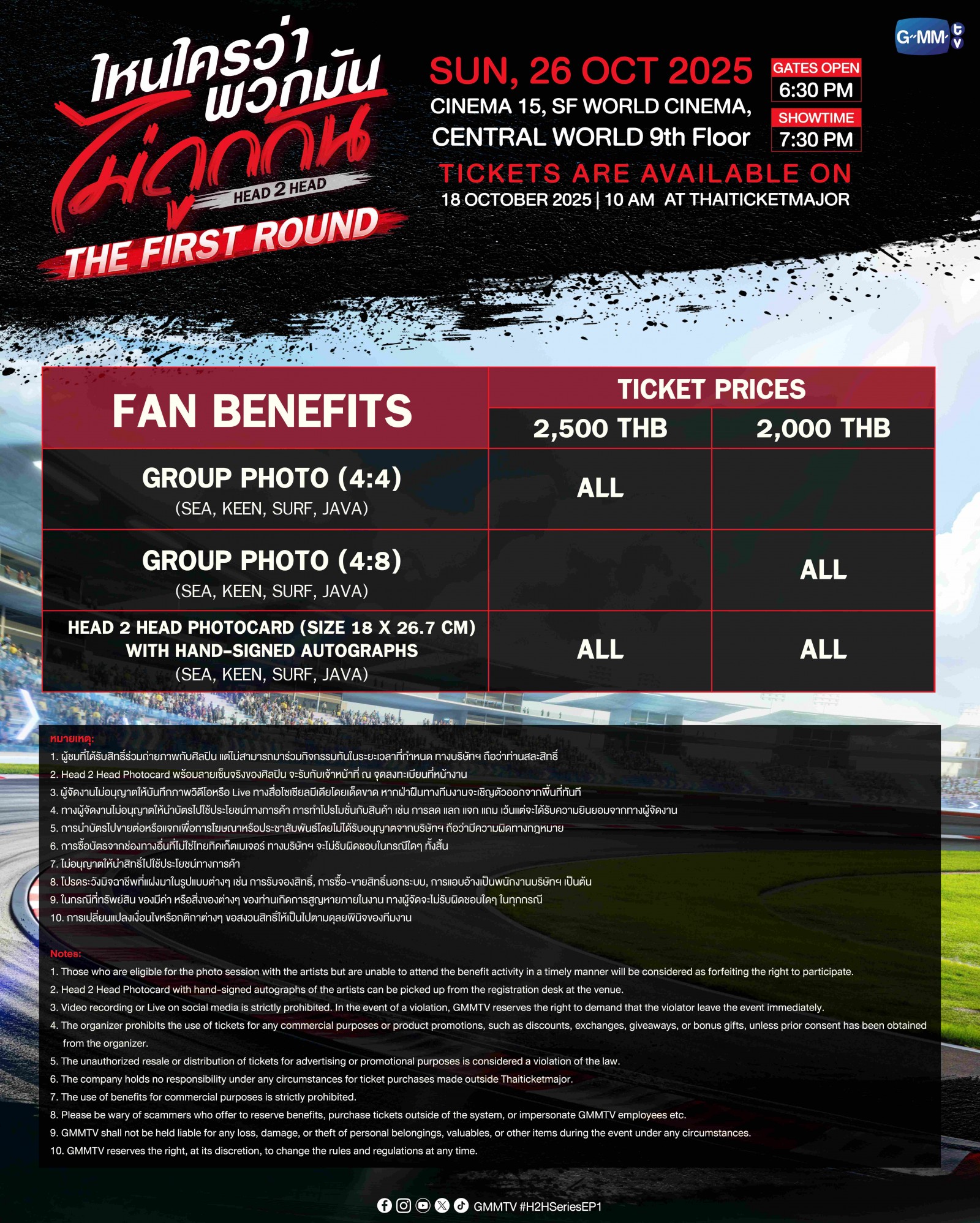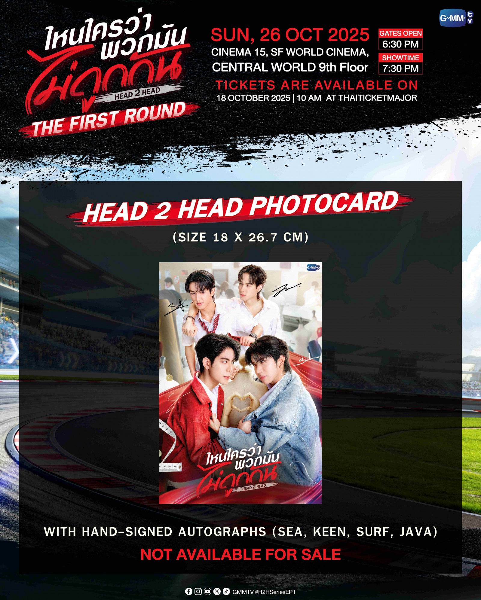 2. Head 2 Head Photocard พร้อมลายเซ็นจริงของศิลปิน จะรับกับเจ้าหน้าที่ ณ จุดลงทะเบียนที่หน้างาน