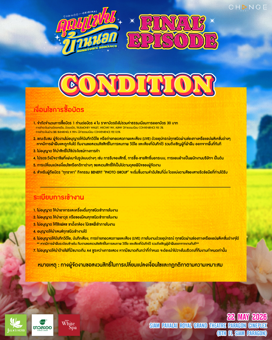 - ราคาบัตรยังไม่รวมค่าบริการใบละ 30 บาท