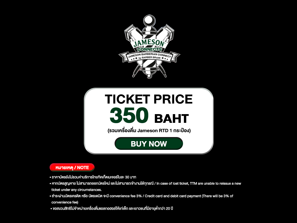 350 บาท (รวมเครื่องดื่ม Jameson RTD 1 กระป๋อง)