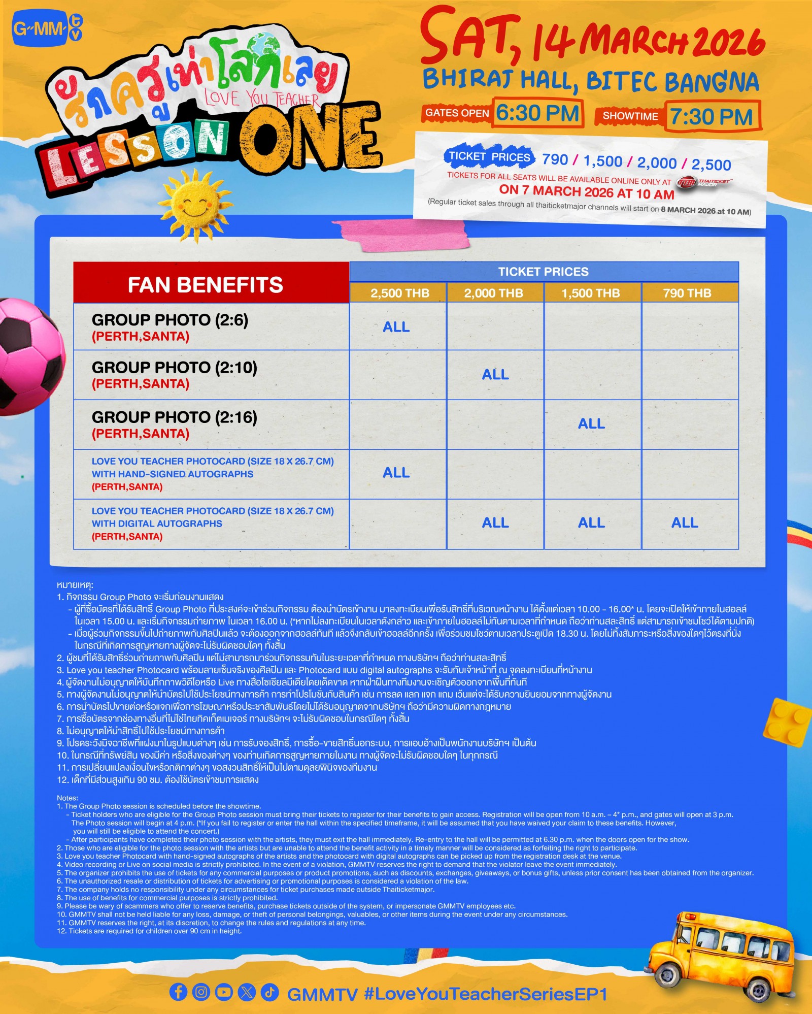 รายละเอียดเพิ่มเติม : www.thaiticketmajor.com และ Facebook / Instagram / X / TikTok / YouTube / Weibo: GMMTV