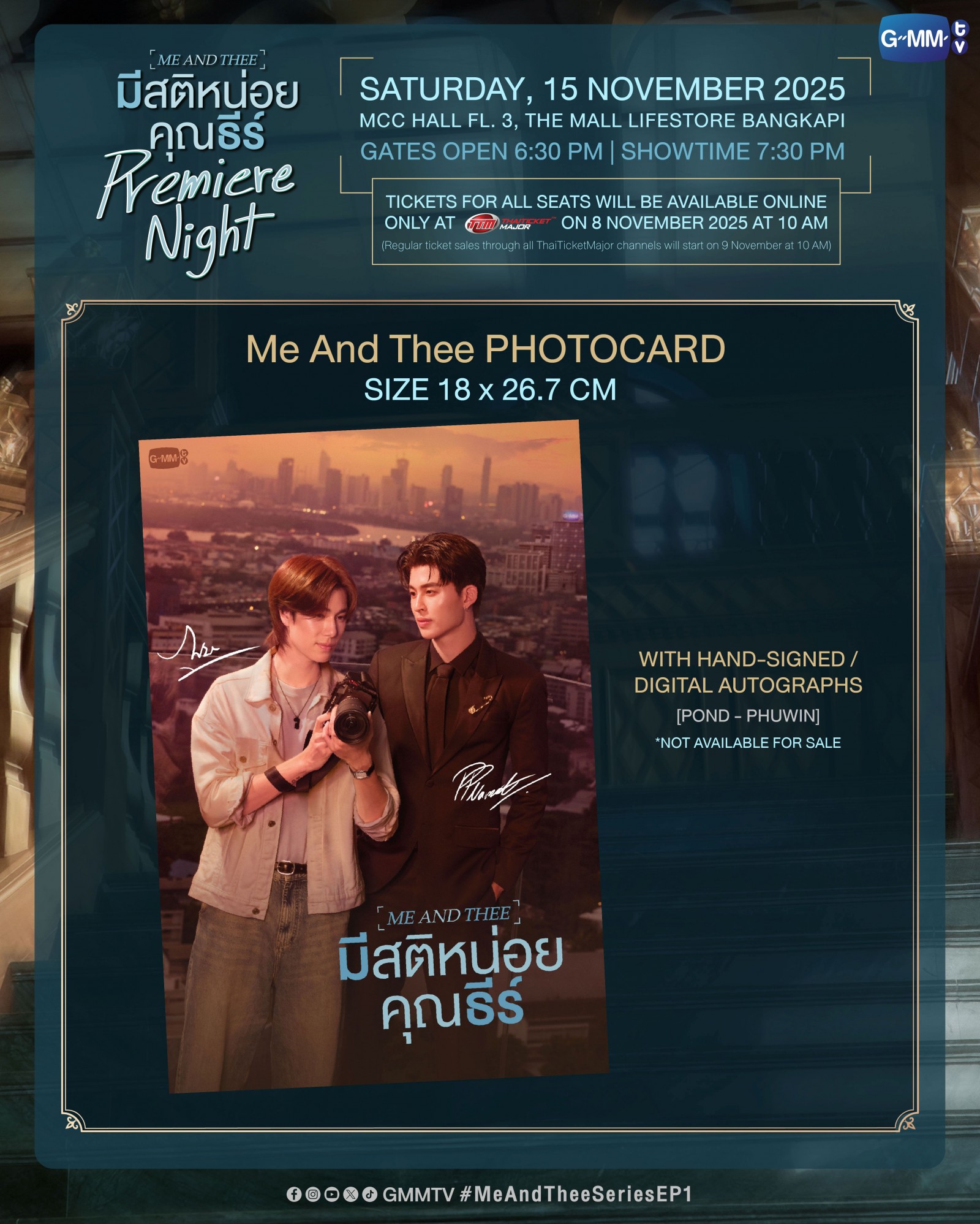 3. Me and Thee Photocard พร้อมลายเซ็นจริงของศิลปิน และ Photocard แบบ digital autographs จะรับกับเจ้าหน้าที่ ณ จุดลงทะเบียนที่หน้างาน