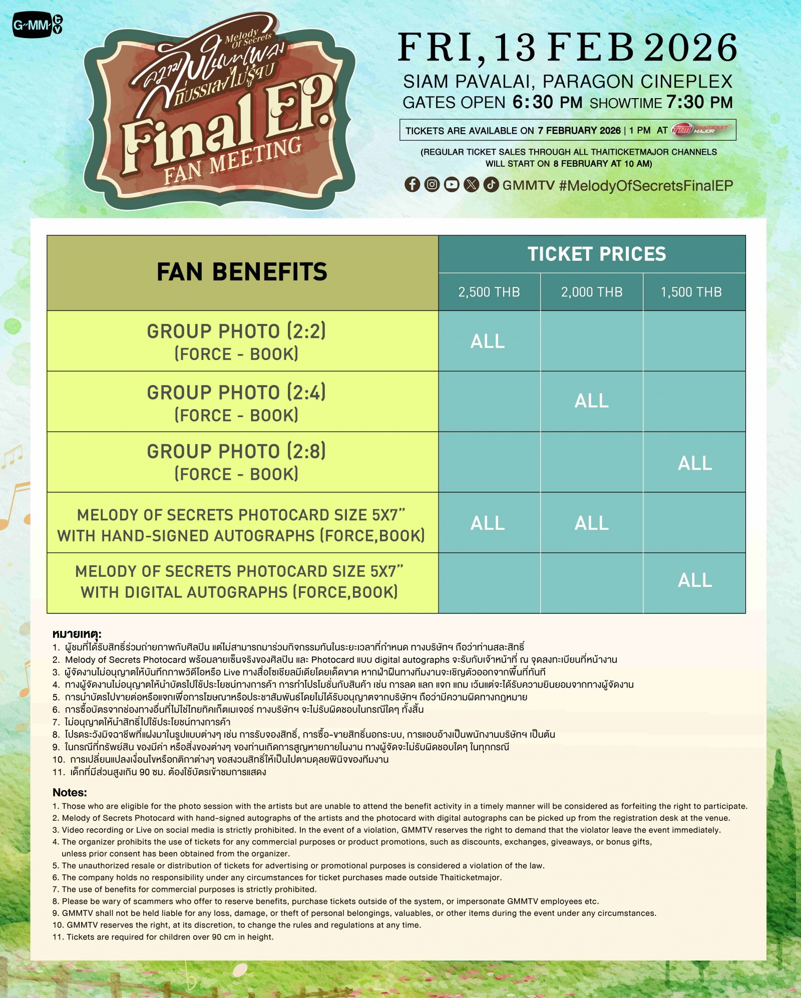 6. การซื้อบัตรจากช่องทางอื่นที่ไม่ใช่ไทยทิคเก็ตเมเจอร์ ทางบริษัทฯ จะไม่รับผิดชอบในกรณีใด ๆ ทั้งสิ้น