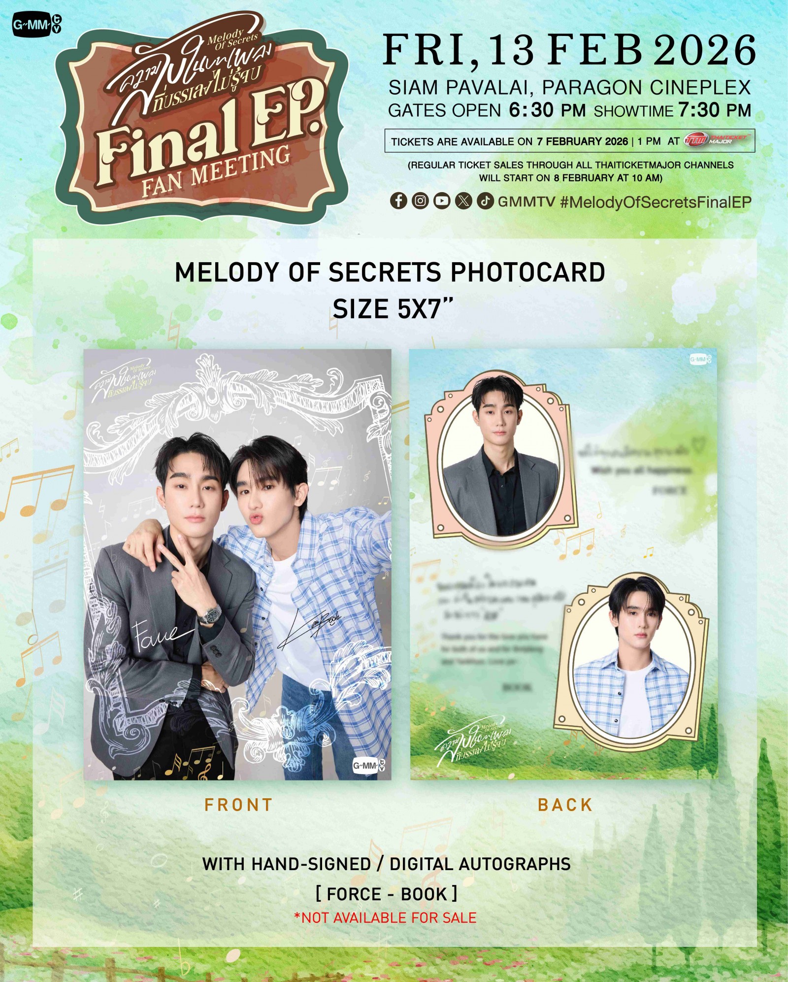 2. Melody of Secrets Photocard พร้อมลายเซ็นจริงของศิลปิน และ Photocard แบบ digital autographs จะรับกับเจ้าหน้าที่ ณ จุดลงทะเบียนที่หน้างาน
