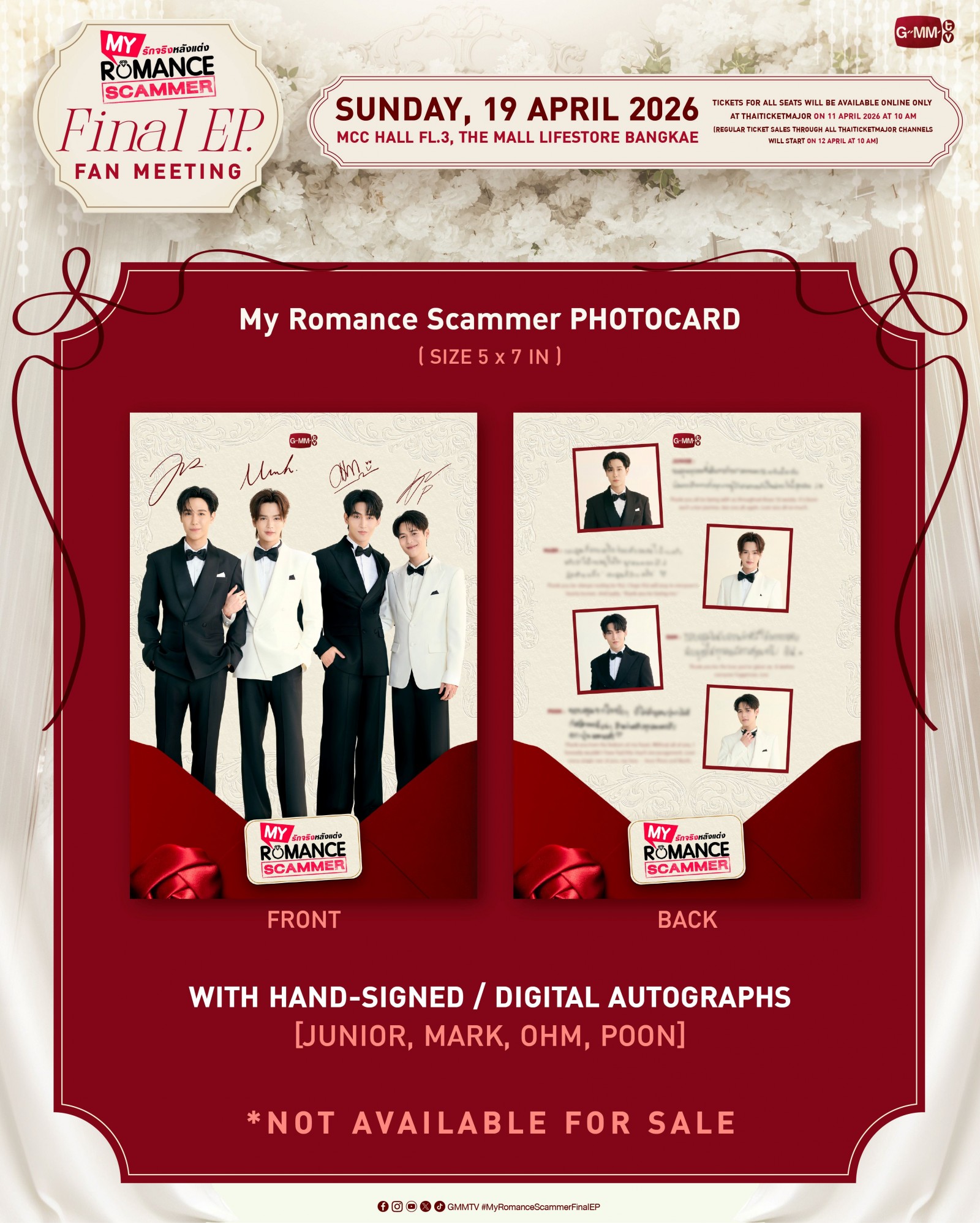 4. My Romance Scammer Photocard พร้อมลายเซ็นจริงของศิลปิน และ Photocard แบบ digital autographs จะรับกับเจ้าหน้าที่ ณ จุดลงทะเบียนที่หน้างาน