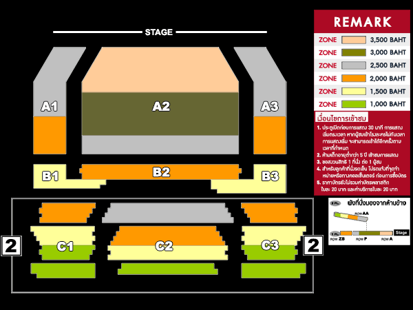 1. ประตูเปิดก่อนการแสดง 30 นาที การแสดงเริ่มตรงเวลา หากผู้ชมเข้าโรงละครไม่ทันเวลาการแสดงเริ่ม จะสามารถเข้าได้อีกครั้งตามเวลาที่กำหนด