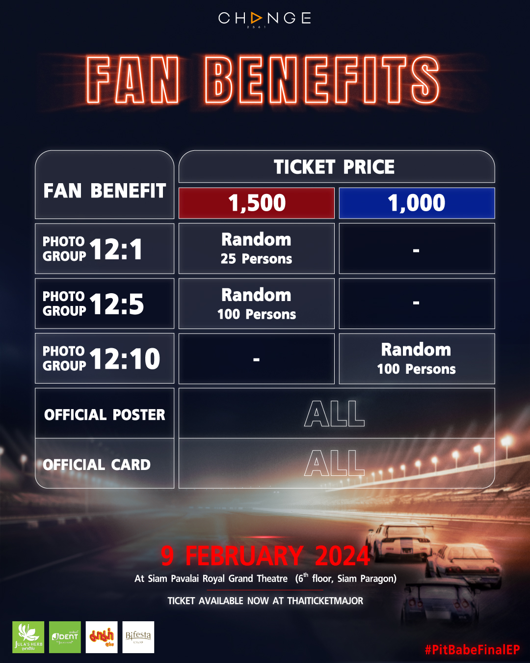 GROUP PHOTO 12:1 สำหรับบัตร 1,500 | GROUP PHOTO 12:5 สำหรับบัตร 1,500 และ GROUP PHOTO 12:10 สำหรับบัตร 1,000 ในวันที่ 2 กุมภาพันธ์ 2567 ทาง FACEBOOK FANPAGE ของ “PIT BABE THE SERIES”