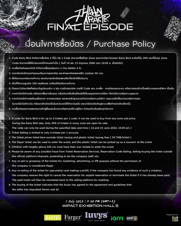 วันเสาร์ที่ 17 มิถุนายน 2566 เวลา 10:00 น. เป็นต้นไป เปิดจำหน่ายบัตรทุกช่องทางการจำหน่าย
