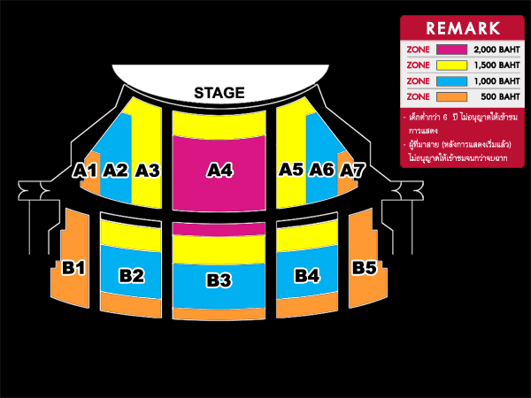 - เด็กต่ำกว่า 6 ปี ไม่อนุญาตให้เข้าชมการแสดง