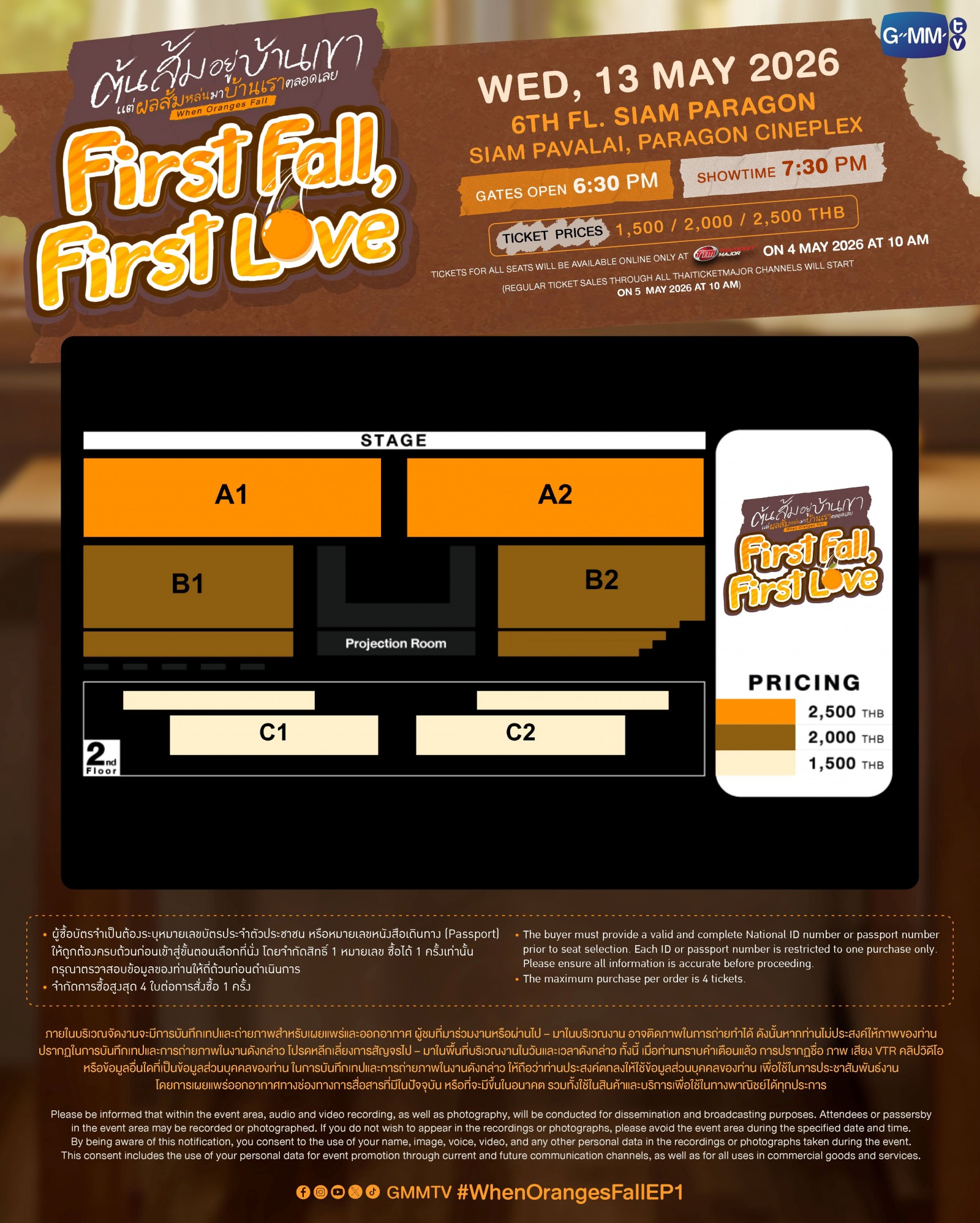 เปิดจำหน่ายบัตร ทุกช่องทางตามปกติ : วันอังคารที่ 5 พฤษภาคม 2569 เริ่มเวลา 10:00 น. เป็นต้นไป