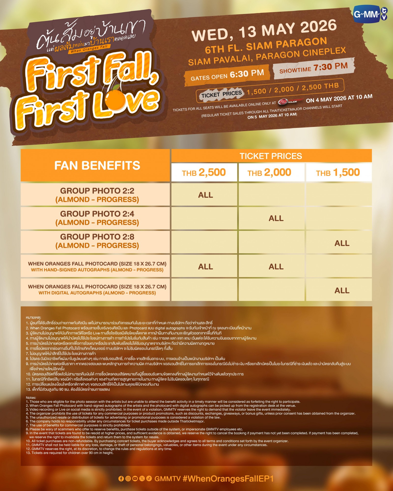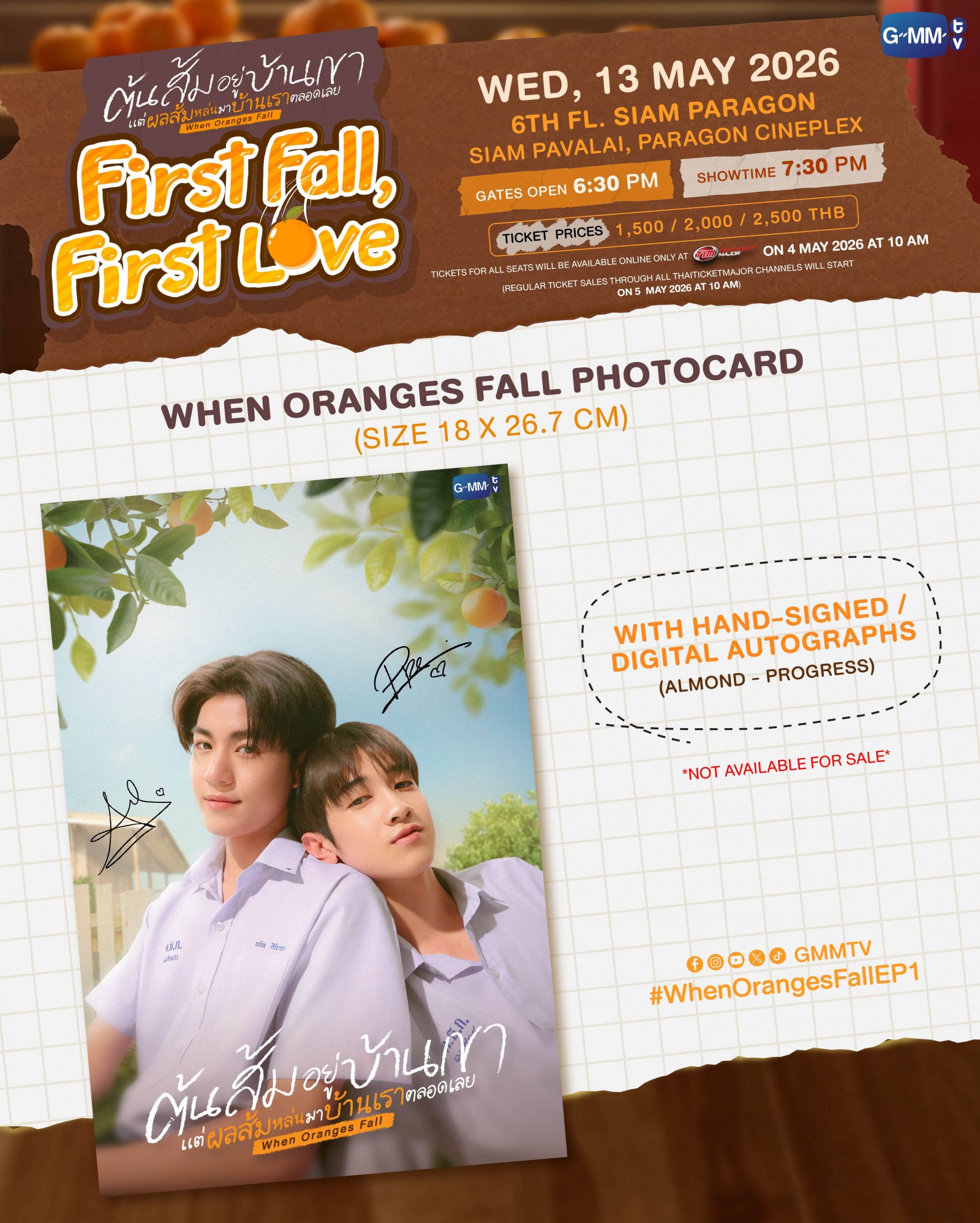 4. When Oranges Fall Photocard พร้อมลายเซ็นจริงของศิลปิน และ Photocard แบบ digital autographs จะรับกับเจ้าหน้าที่ ณ จุดลงทะเบียนที่หน้างาน