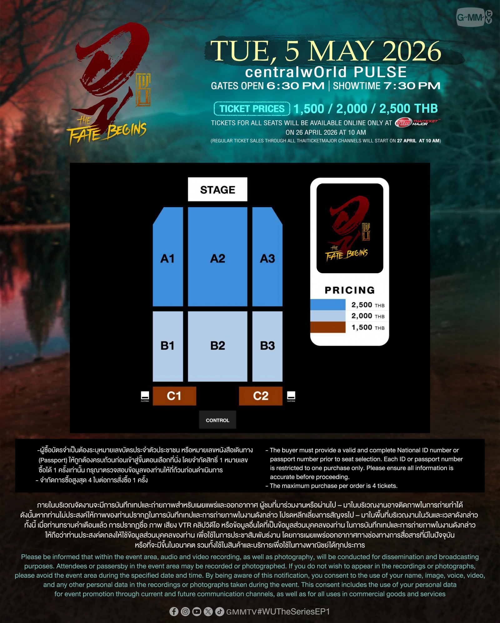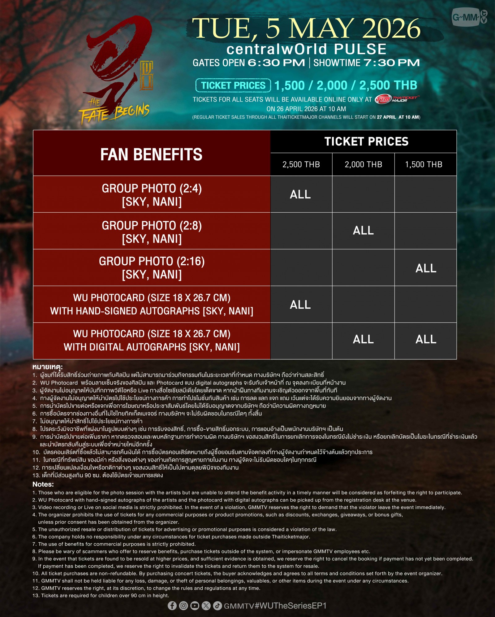 เปิดจำหน่ายบัตร ทุกช่องทางตามปกติ : วันจันทร์ที่ 27 เมษายน 2569 เริ่มเวลา 10:00 น. เป็นต้นไป