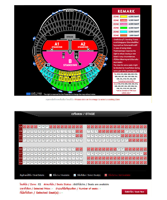 3. เลือกรอบการแสดง วันเวลา โซน และ ที่นั่ง (ในหน้าที่ 2 และ 3 ของระบบ)