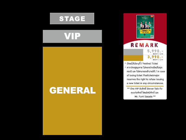 2. บัตรนั่งไม่ระบุที่ หากบัตรสูญหายหรือไม่ได้นำบัตรไปวันงานแสดง ต้องซื้อบัตรใหม่เท่านั้น
