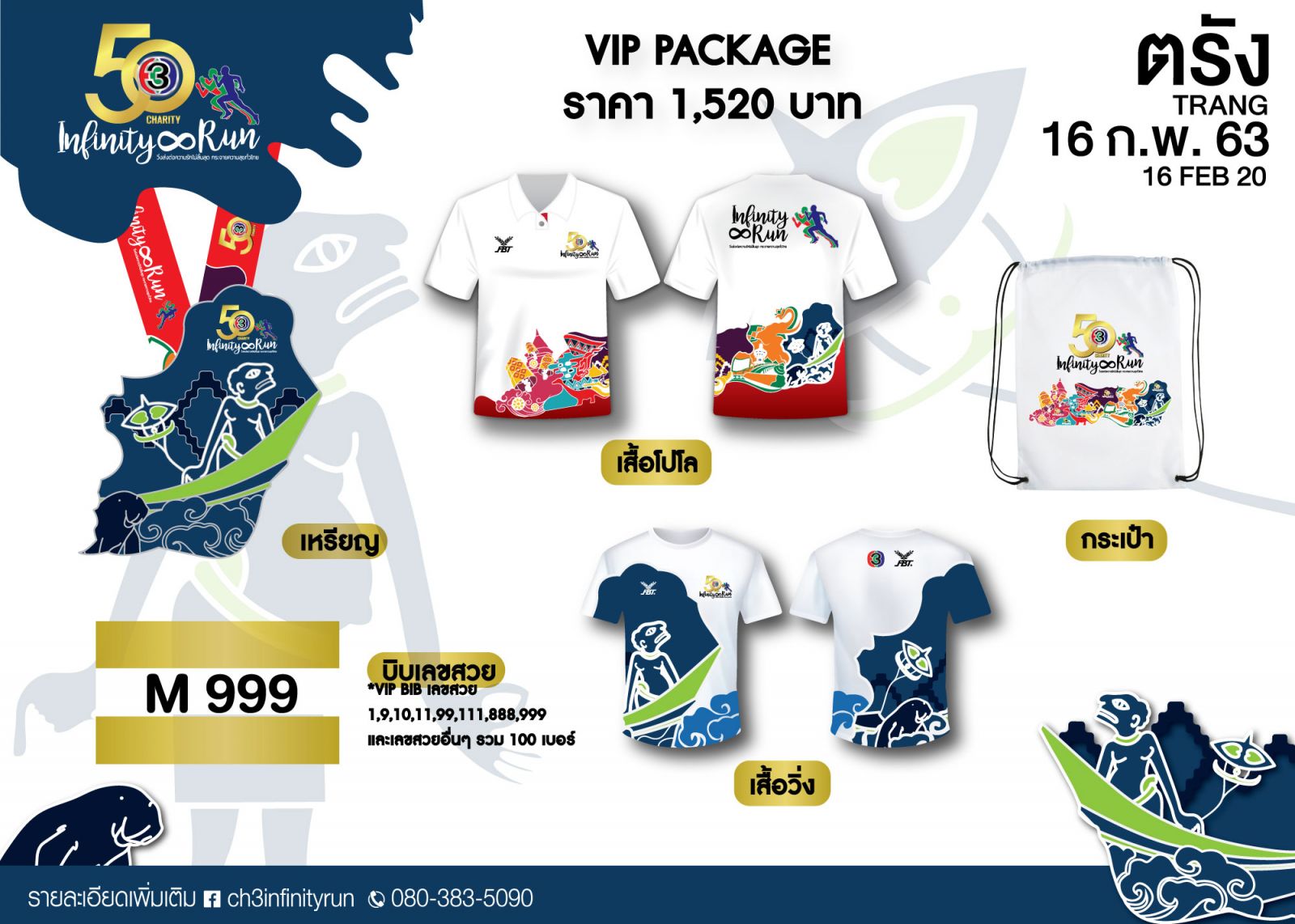 พิเศษ VIP วิ่งได้ทั้ง ฟันรัน หรือ มินิ ราคา 1,520 บาท (รับเสื้อวิ่ง,เสื้อโปโล,กระเป๋า,เบอร์วิ่งมีชิพเลขสวยพิเศษ,รับเหรียญเมื่อเข้าเส้นชัย)