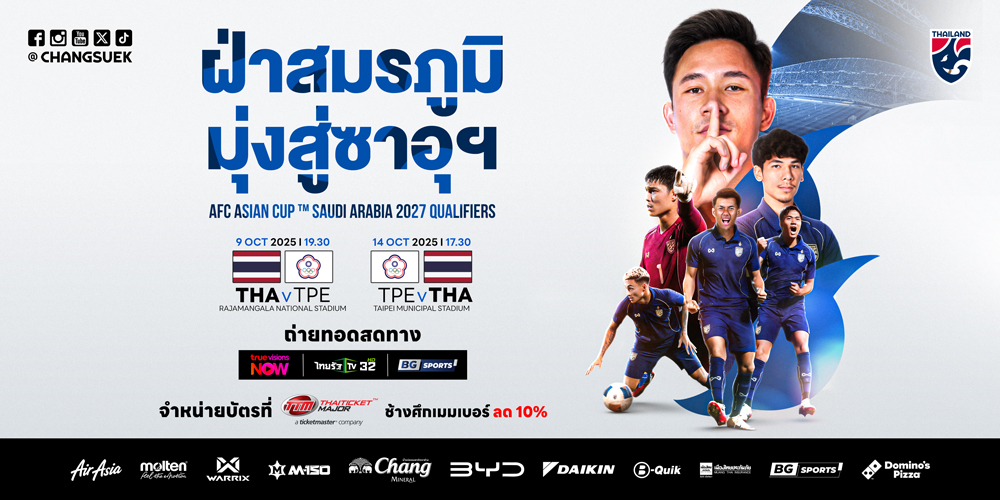 • เปิดจำหน่ายบัตรบุคคลทั่วไป วันจันทร์ที่ 22 กันยายน 2568 เวลา 10:00 น. เป็นต้นไป ทุกช่องทางจำหน่าย