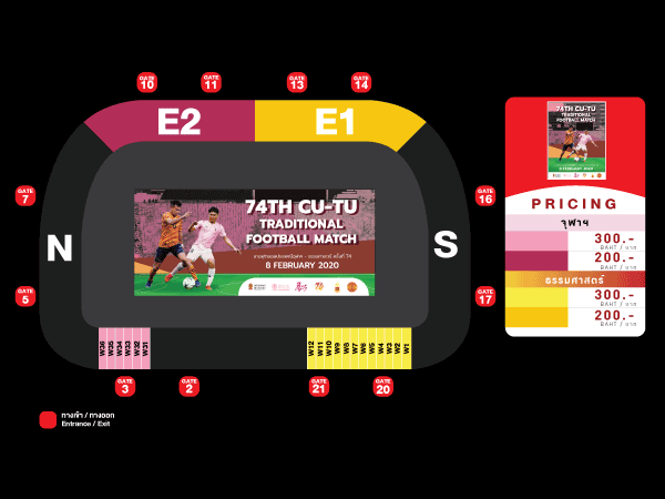 - สำหรับลูกค้าที่ซื้อบัตรผ่านจุดจำหน่ายหลัก 14 สาขาหลักไทยทิคเก็ตเมเจอร์ (รวมทั้ง ณ สนามแข่งขันในวันแข่ง) สามารถใช้บัตรกระดาษ TTM เข้าสนาม