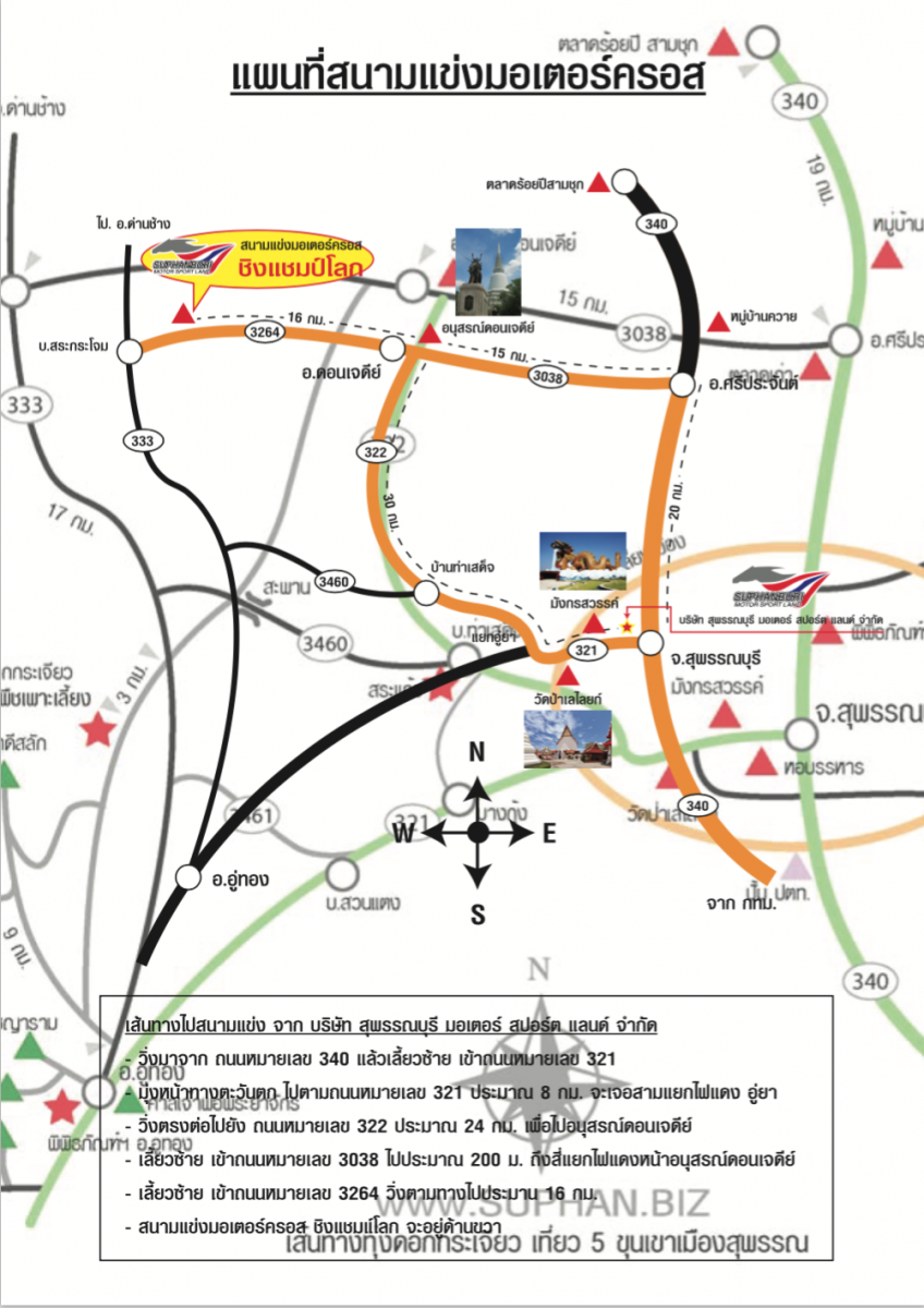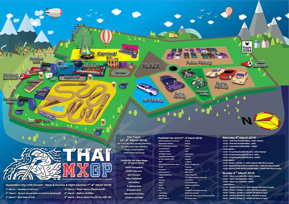 การแข่งขันรถจักรยานยนต์โมโตครอสชิงแชมป์โลก “2016 FIM Motocross World Championship Grand Prix มีคิวแข่งขันทั้งสิ้น 18 สนามทั่วโลก ขณะประเทศไทยจะรับหน้าเสื่อเป็นเจ้าภาพจัดการแข่งขันเป็นปีที่ 4 ติดต่อกัน ซึ่งในฤดูกาล 2016 เมืองไทยถูกระบุให้เป็นสนามแข่งที่ 2 ของปี ระหว่างวันที่ 4-6 มีนาคมนี้ และเป็นสนามแห่งเดียวในเอเชียที่ใช้รองรับการแข่งขันในฤดูกาลนี้ และนับเป็นปีแรกที่ “ThaiMXGP” ไปจัดการแข่งขันในจังหวัดสุพรรณบุรี ด้วยการสร้างสนามโมโตครอสแห่งใหม่อย่าง “สุพรรณบุรี มอเตอร์สปอร์ต แลนด์” ตั้งอยู่ที่ ต.สระกระโจม อ.ดอนเจดีย์ จ.สุพรรณบุรี ซึ่งถือเป็นสนามทางฝุ่นที่ดีที่สุดในเมืองไทย ได้มาตรฐานระดับโลก ออกแบบโดย จัสติน บาร์เคลย์ นักออกแบบสนามโมโตครอสระดับโลกชาวอังกฤษ โดยถูกยกให้เป็นสนามโมโตครอสระดับโลกที่ได้รับความสนใจอย่างมากในเวลานี้ มีการทุ่มงบประมาณหลายร้อยล้านบาทในการก่อสร้าง เพื่อผลักดันให้เป็นสนามทางฝุ่นอันดับหนึ่งของเอเชีย มีระยะทางต่อรอบ 1.6 กิโลเมตร ประกอบด้วยเนินหลากหลายสลับกัน 11 เนิน รวมถึงเส้นทางตรงที่ทำความเร็วได้สูง สลับกับโค้งทั้งแคบและกว้าง กว่า 13 โค้ง สร้างความท้าทายให้กับนักบิดทุกคน