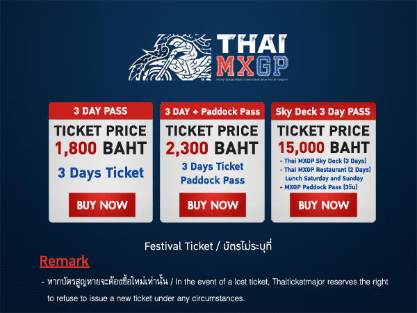 - สามารถเข้าในโซน MXGP Paddock Pass (3วัน)