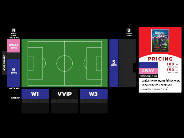 - Away Zone จำหน่ายผ่าน 14 สาขาหลัก และ จุดจำหน่ายบัตรที่หน้างาน เท่านั้น
