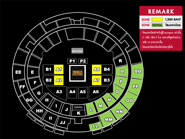 พิเศษสุดด้วย บัตรที่นั่งโซนพิเศษ ติดขอบเวที (จำนวนจำกัด) ในราคา 1,500.- พร้อมรับของที่ระลึกสุดพิเศษจาก MONO29 จองบัตรได้ที่ Thai Ticket Major ทุกสาขา ตั้งแต่วันนี้เป็นต้นไป สอบถามได้ที่ไทยทิคเก็ตเมเจอร์ โทร 0-2262-3456 หรือ www.thaiticketmajor.com และลงทะเบียนรับ บัตรที่นั่งฟรี!!! ได้ที่ MONO29 โทร 0-2100-7040 ตั้งแต่เวลา 07.00-22.00 น.