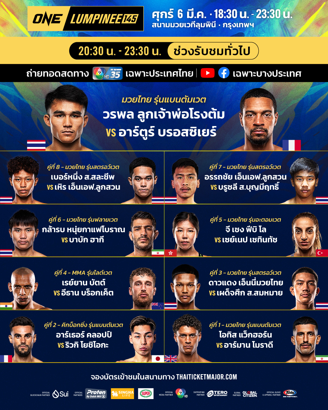 - ราคาบัตรยังไม่รวมค่าบริการไทยทิคเก็ตเมเจอร์ใบละ 30 บาท
