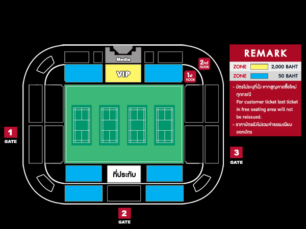 - บัตร VIP 1 ใบ จะมีของที่ระลึก เครื่องดื่ม และของว่าง พร้อมทั้งได้สิทธิ์การขอลายเซ็นต์นักกีฬาในรอบชิงชนะเลิศ