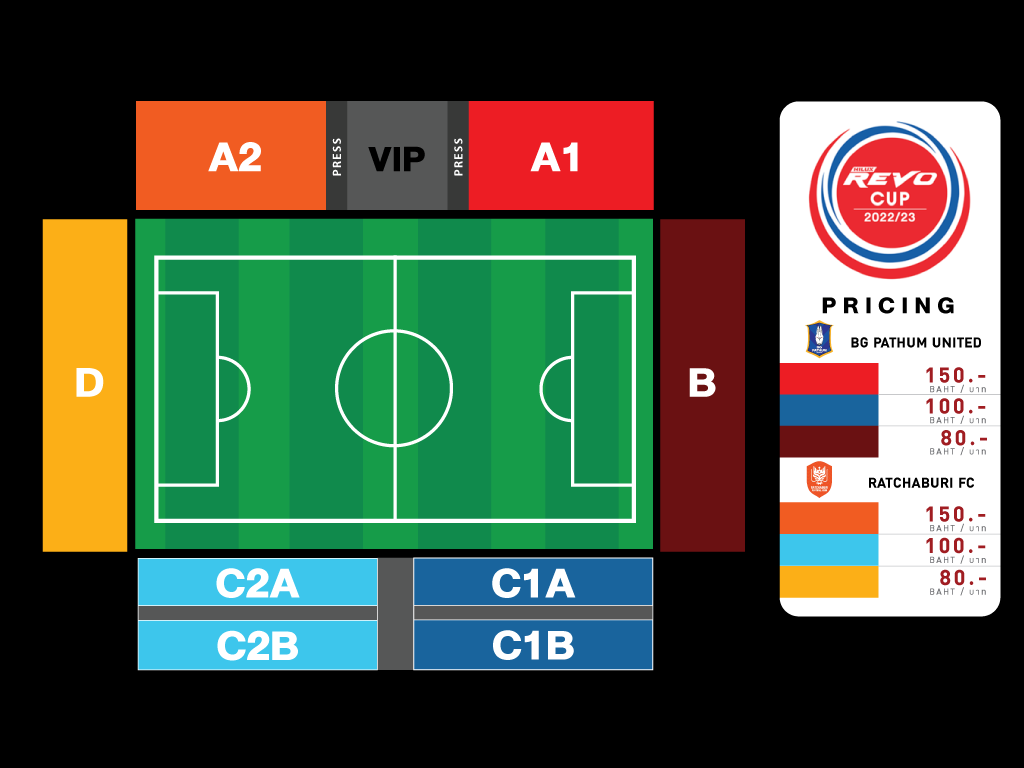 บีจี ปทุม ยูไนเต็ด | A1 : 150 บาท , C1 : 100 บาท , B : 80 บาท
