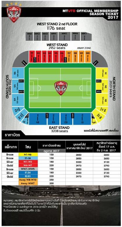 - สมาชิกเก่าหากไม่ได้สมัครต่ออายุระหว่างวันที่ 18 ม.ค – 2 ก.พ 60 จะต้องสมัครสมาชิกในราคาสมาชิกใหม่ และไม่อาจเลือกที่นั่งเดิมได้ ในกรณีที่นั่งเดิมของท่านนั้น ถูกเลือกไปก่อนแล้ว