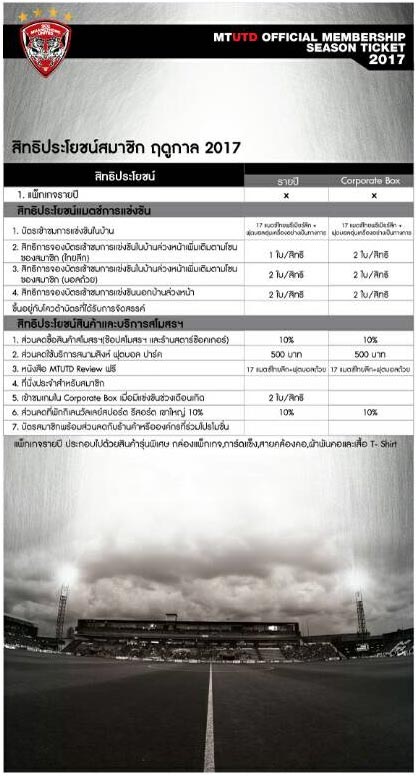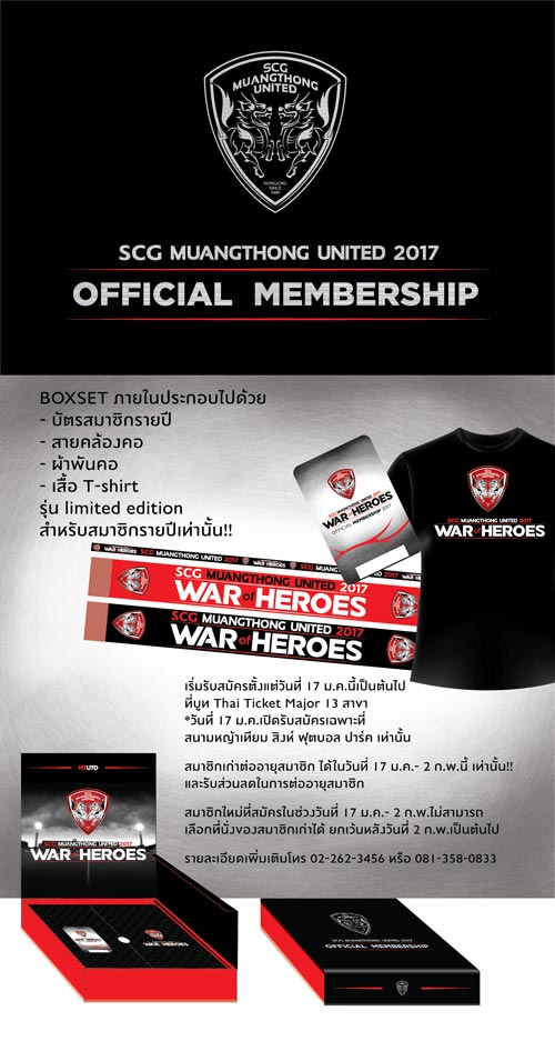 - สำหรับ สมาชิกรายปีประจำฤดูกาล 2017 กำหนดการรับ BOX SET รอทางสโมสรประกาศให้ทราบอีกครั้ง