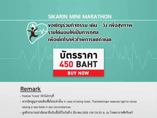 - Sikarin Mini Marathon เดิน-วิ่ง เพื่อเด็กโรคหัวใจพิการแต่กำเนิด