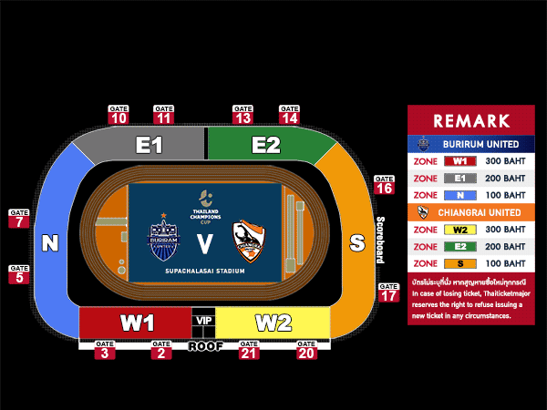 - จุดจำหน่ายบัตรหน้าสนามในวันแข่งขันเปิดตั้งแต่เวลา 12:00 น.เป็นต้นไป