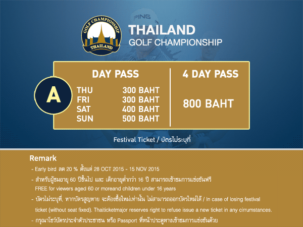 สำหรับผู้ชมอายุ 60 ปีขึ้นไป และ เด็กอายุต่ำกว่า 16 ปี สามารถเข้าชมการแข่งขันฟรี *ต้องโชว์บัตรประจำตัวประชาชน หรือ Pass Port ที่หน้าประตูทางเข้าชมการแข่งขันด้วย