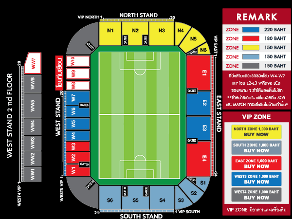 - สำหรับ ห้อง VIP ROOM ติดต่อสโมสร สโมสรจำหน่ายเอง