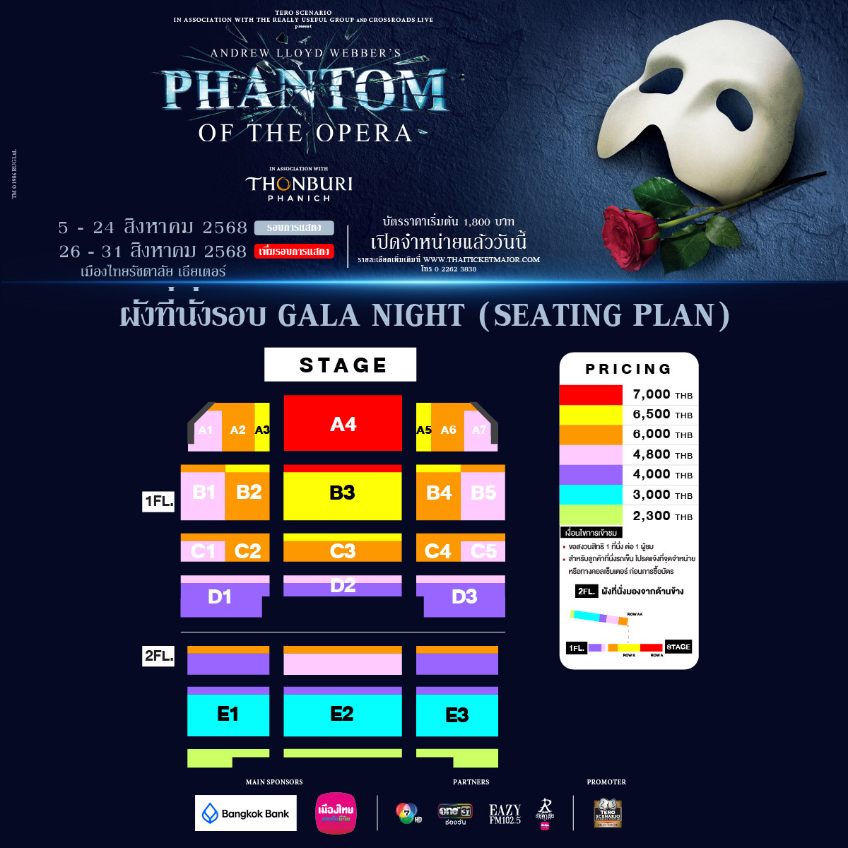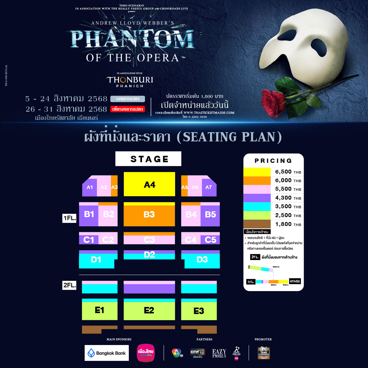 ห้ามพลาด! การกลับมาอีกครั้งของสุดยอดมิวสิคัลโชว์ที่ครองใจผู้ชมทั่วโลกตลอดกาล กับ “เดอะ แฟนธอม ออฟ ดิ โอเปร่า” เตรียมเปิดประสบการณ์และสัมผัสมนต์เสน่ห์ของเรื่องราวความรักที่ยืนยาวที่สุดในโลกได้ในระหว่างวันที่ 5-31 สิงหาคม 2568 ณ เมืองไทยรัชดาลัย เธียเตอร์ บัตรเข้าชมราคาเริ่มต้น 1,800 บาท สามารถซื้อได้ที่เคาน์เตอร์ไทยทิคเก็ตเมเจอร์ทุกสาขา และทางเว็บไซต์ www.thaiticketmajor.com เปิดจำหน่ายบัตรรอบพรีเซลส์ วันที่ 8-14 กุมภาพันธ์ 2568 และ เปิดจำหน่ายบัตรอย่างเป็นทางการในวันที่ 15 กุมภาพันธ์ 2568 เป็นต้นไป สอบถามรายละเอียดเพิ่มเติม โทร. 02-262-3838 และติดตามความเคลื่อนไหวการแสดงได้ที่เฟซบุ๊ก www.facebook.com/Rachadalai