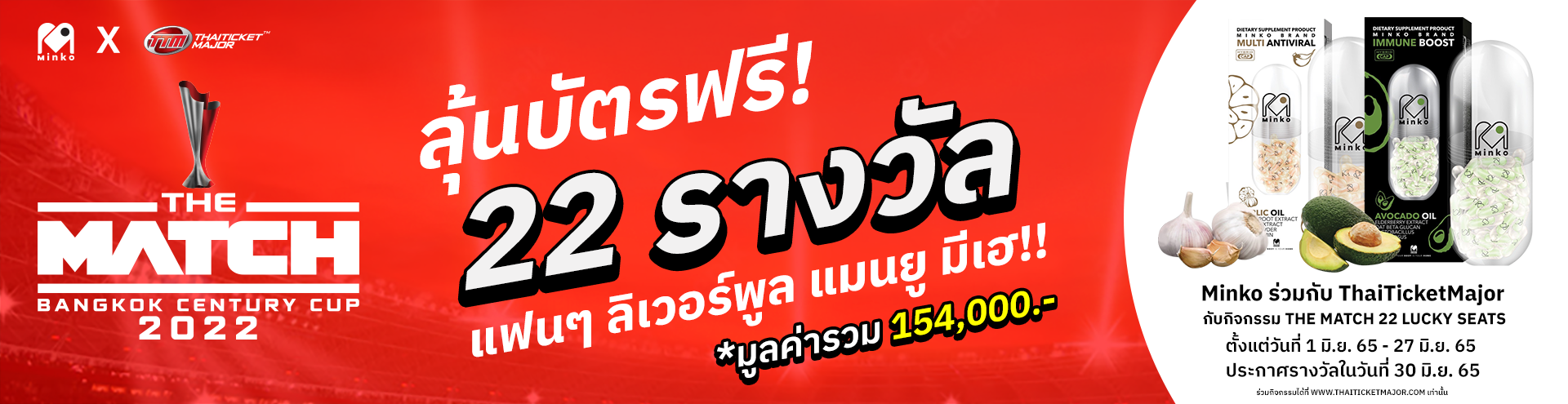 Minko ร่วมกับ ThaiTicketMajor แจกบัตรชมการแข่งขัน THE MATCH BANGKOK CENTURY CUP 2022 จำนวน 22 รางวัล มูลค่ารวม 154,000 บาท